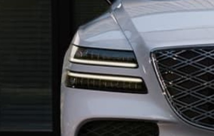 제네시스 고유의 그릴 디자인에 이중 메쉬 모양의 라디에이터 그릴을 적용하였으며(두겹의 선모양) 코너라인을 부드럽게 하여 더 정교한 이미지를 구혔했어요.
